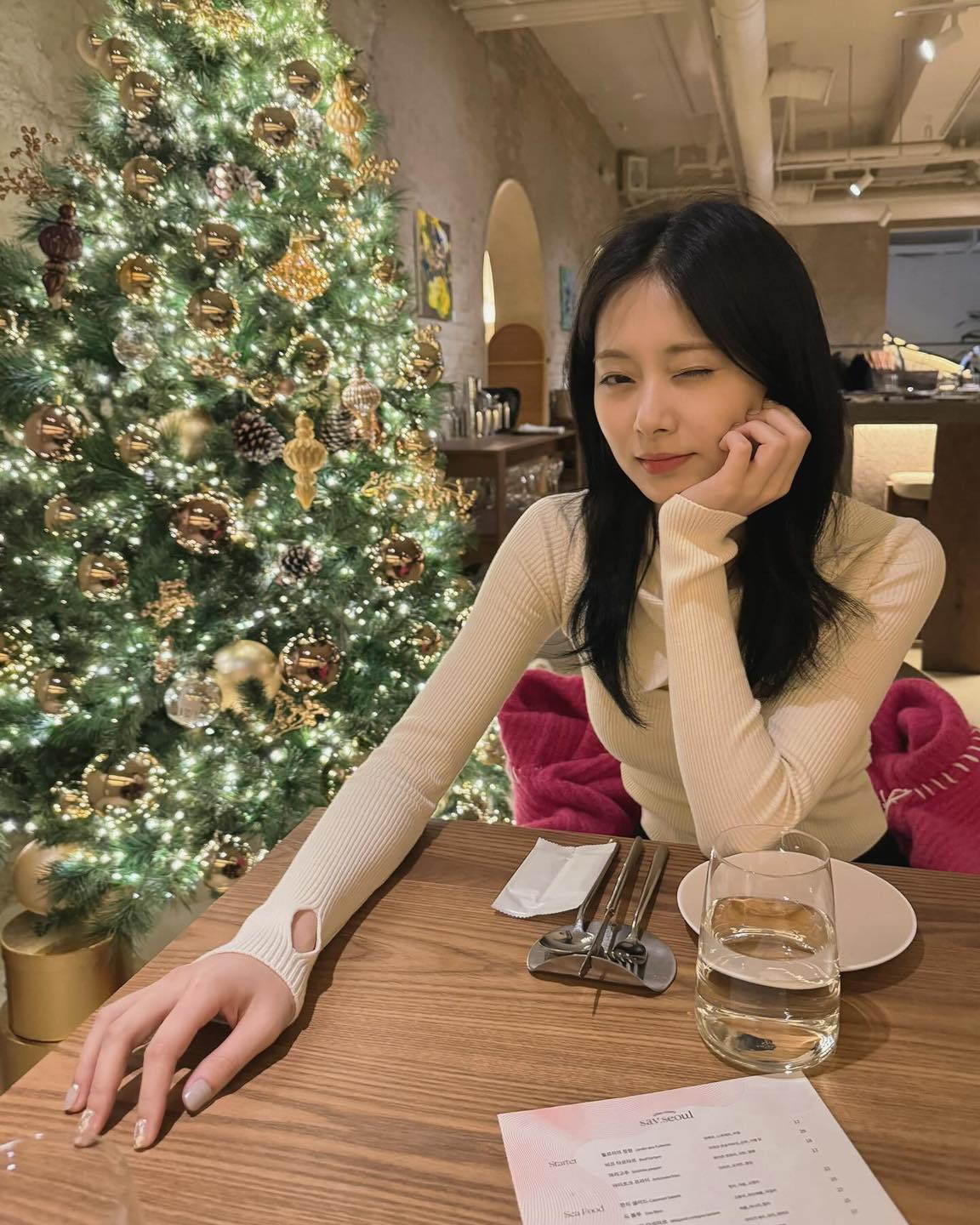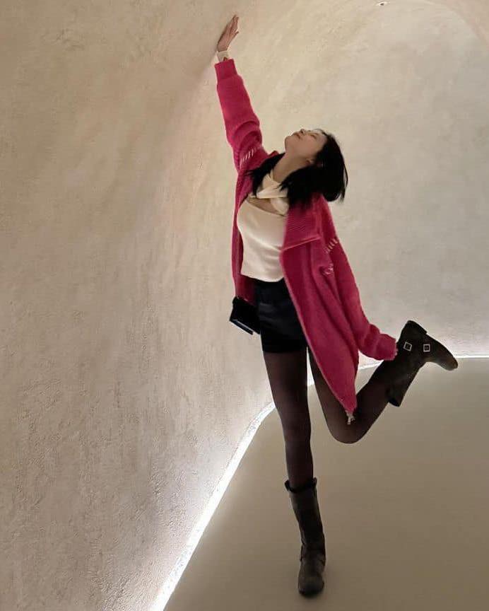 지수가 착용한 팔찌는 뱅글처럼 단단한 형태가 아닌 유연한 디자인으로 나사 모양의 스크류 디테일과 세로 리브 텍스처가 은은하게 빛나 세련된 분위기가 돋보이죠. 단독 착용만으로도 미니멀하면서 고급스러운 무드를 완성할 수 있습니다.