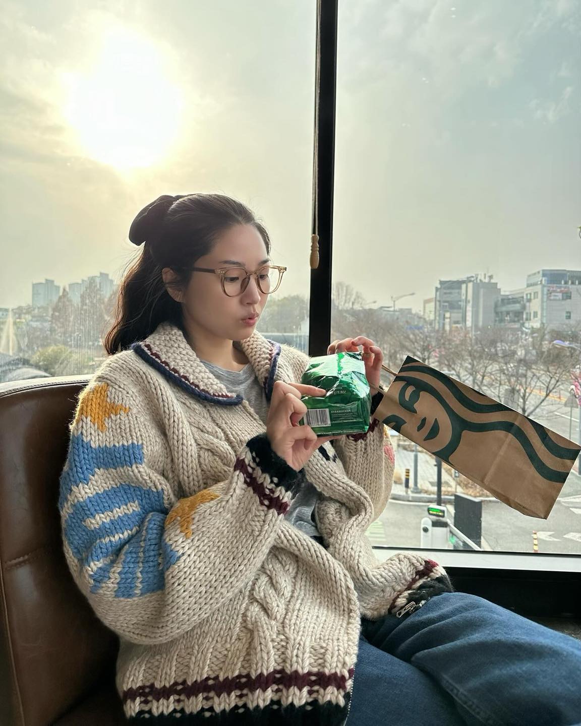 요즘 같은 날씨엔 딱인 가디건💛 오버핏 패턴 가디건🤎 따뜻해진 겨울 날씨에 딱이에요✅가디건