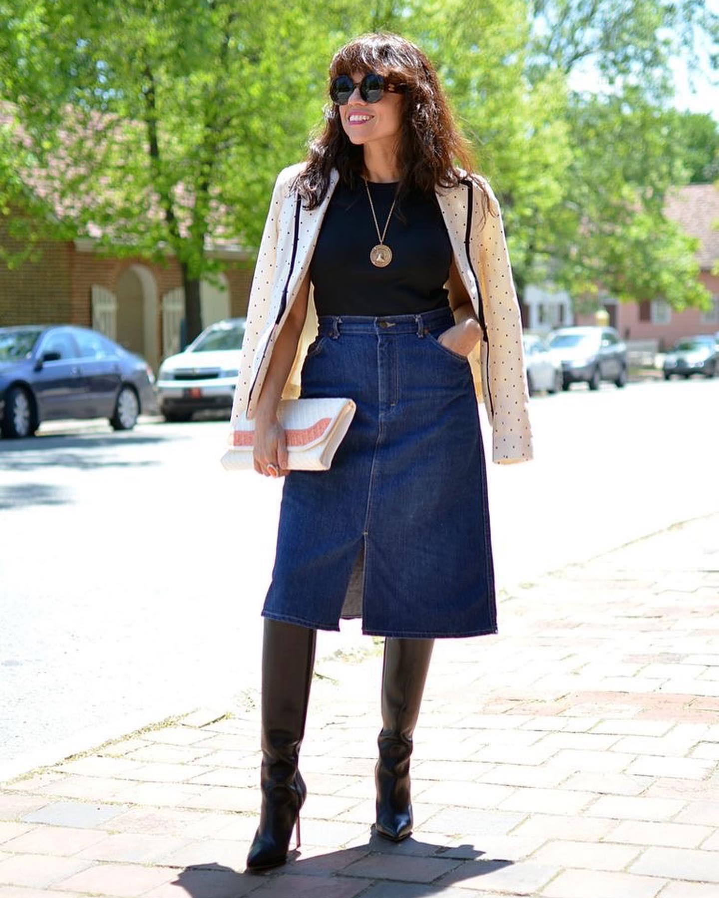 다리 길어보이는 청치마 코디💙