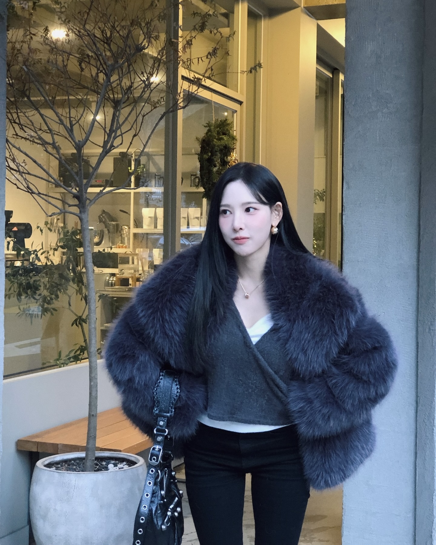 추워도 포기 못 하는 오프숄더🤍 아우터만 든든해도 겨울에 입기 충분해😆✨오프숄더니트